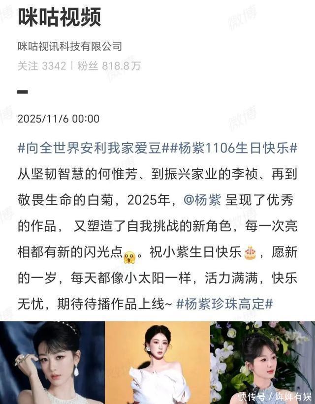 咪咕视频是这样为杨紫庆祝生日的:向全世界安利我家爱豆,杨紫11.06生日快乐! 从坚韧智慧的何惟芳,到振兴家业的李祯,再到敬畏生命的白菊,2025年,杨紫呈现了优秀的作品,又塑造了自我挑战的新角色,每一次亮相都有新的闪光点。祝小紫生日快乐,愿新的一岁,每天都像小太阳一样,活力满满,快乐无忧,期待待播作品上线。