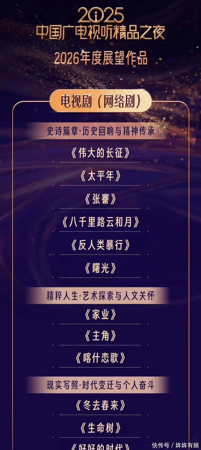 大会2026年度展望作品中,杨紫领衔主演的《家业》《生命树》赫然入列。