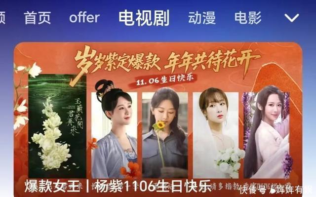 腾讯视频直接在播放平台开设专栏为杨紫庆祝生日:岁岁紫定爆款,年年共待花开!爆款女王/爆剧女王,杨紫11.06生日快乐。