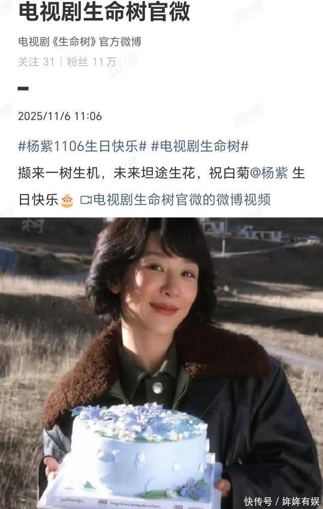 《生命树》剧组,在《生命树》官微为杨紫庆生:杨紫11.06生日快乐!撷来一树生机,未来坦途生花,祝白菊@杨紫生日快乐!